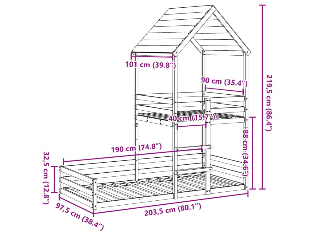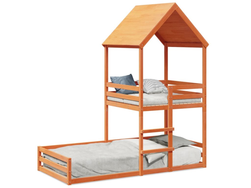 Patrová postel se střechou voskově hnědá 90x190 cm borové dřevo 3282398