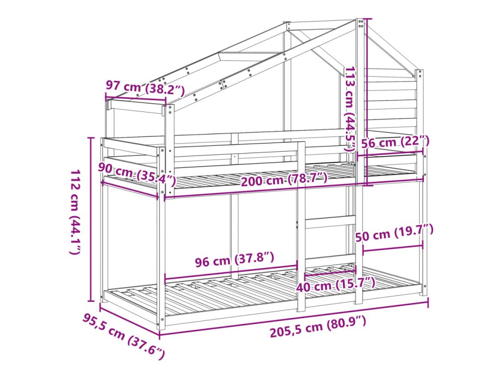 Patrová postel se střechou voskově hnědá 90x200 cm borové dřevo 3281963