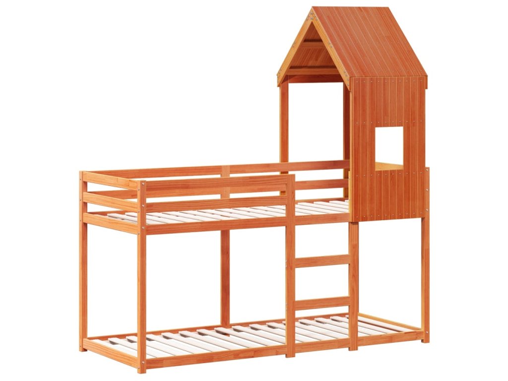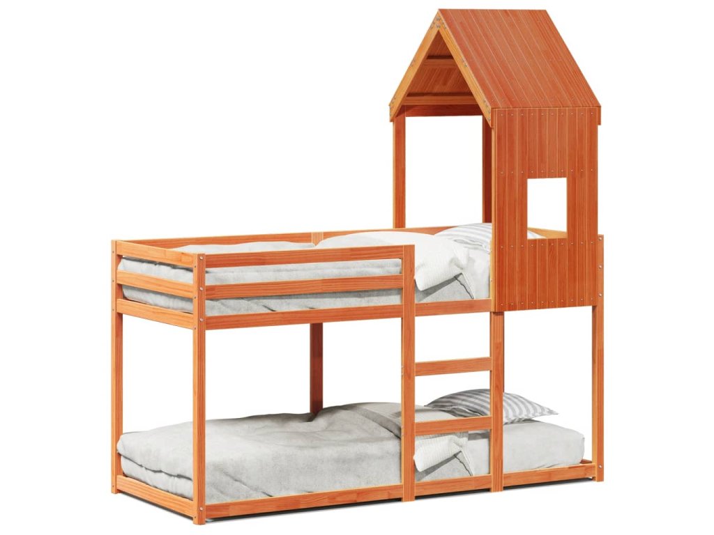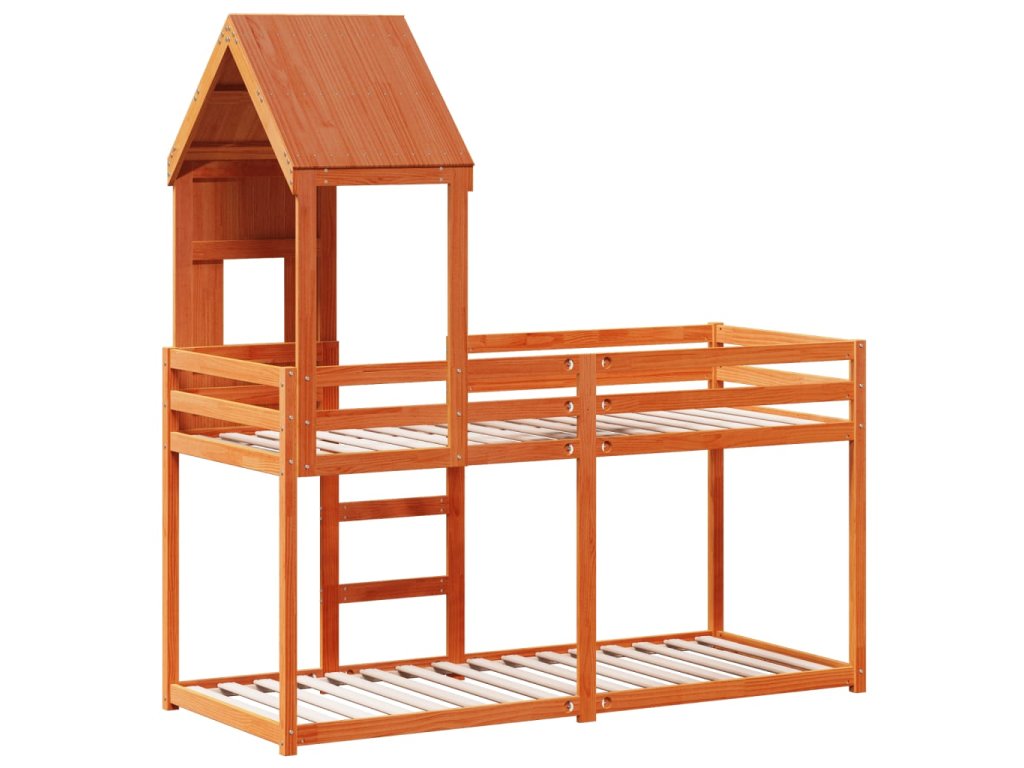 Patrová postel se střechou voskově hnědá 90x200 cm borové dřevo 3281999