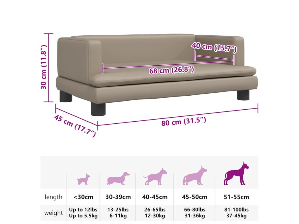 Pelíšek pro psy cappuccino 80 x 45 x 30 cm umělá kůže 171905