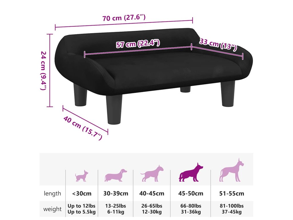 Pelíšek pro psy černý 70 x 40 x 24 cm samet 171955