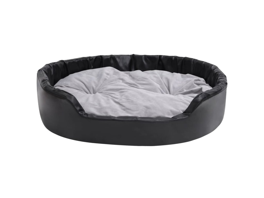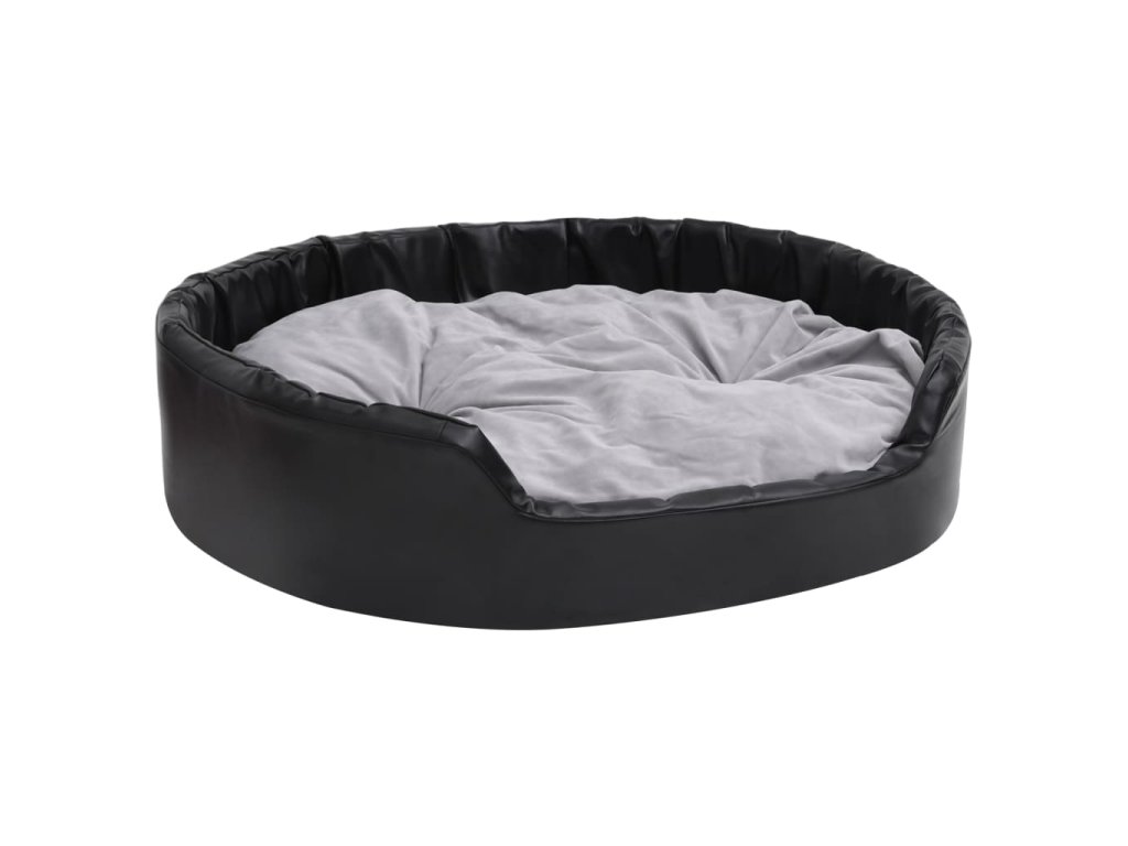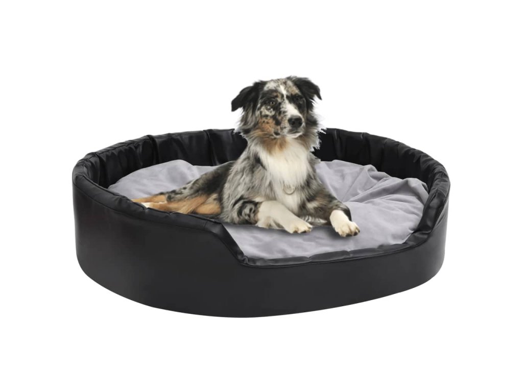 Pelíšek pro psy černý a šedý 99 x 89 x 21 cm plyš a umělá kůže 171256