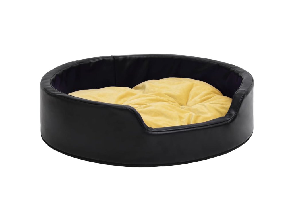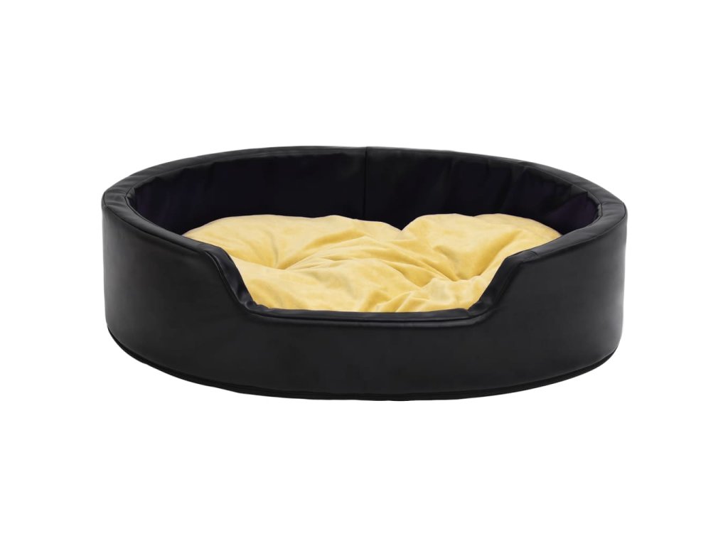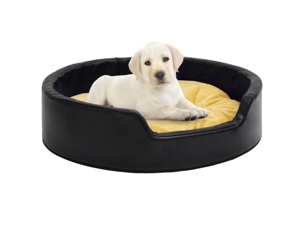 Pelíšek pro psy černý a žlutý 99 x 89 x 21 cm plyš a umělá kůže 171288