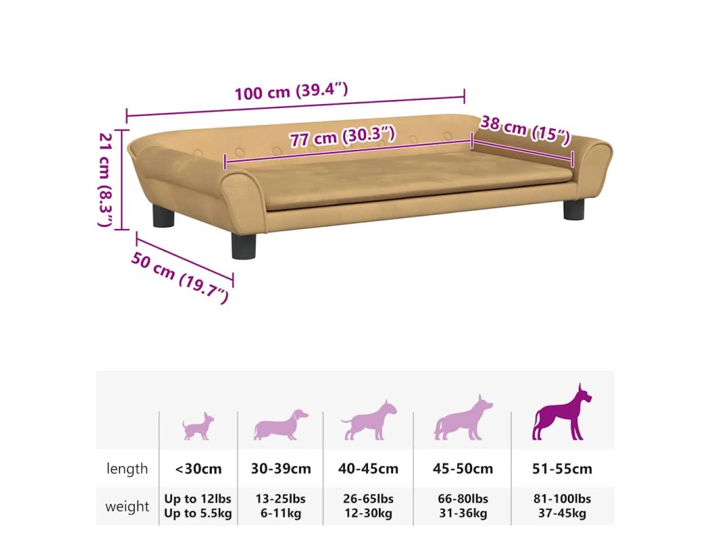 Pelíšek pro psy hnědý 100 x 50 x 21 cm samet 172010