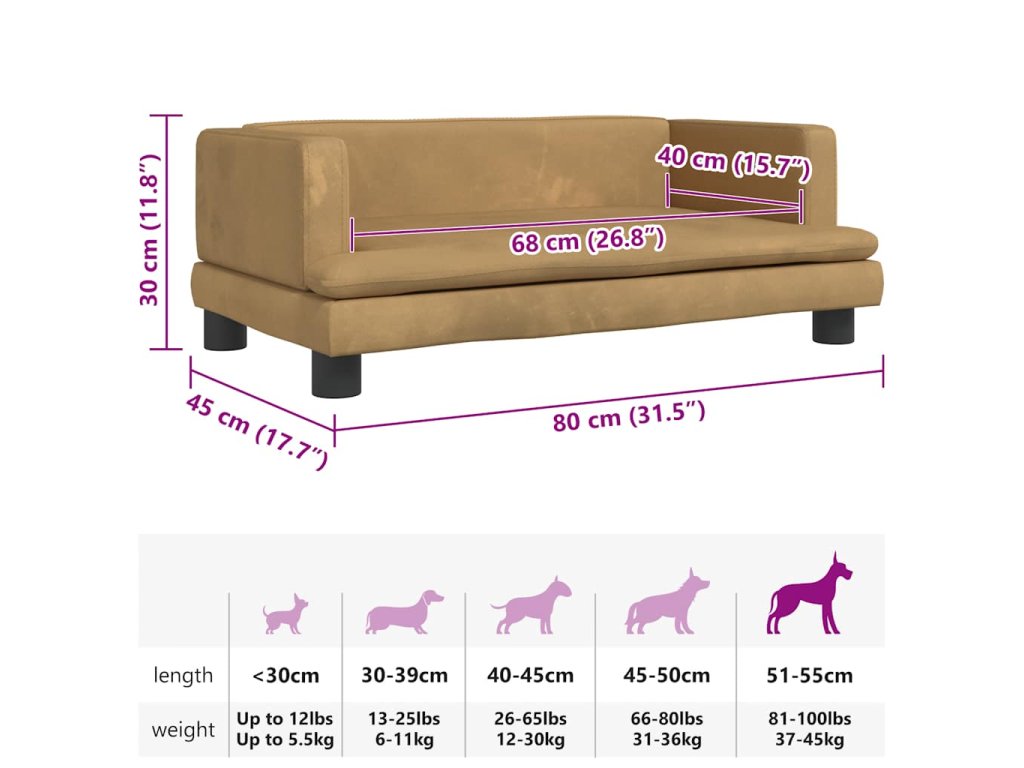 Pelíšek pro psy hnědý 80 x 45 x 30 cm samet 171899