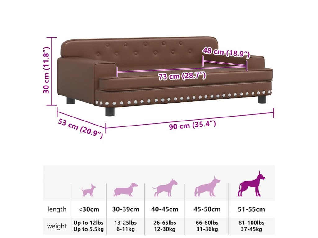 Pelíšek pro psy hnědý 90 x 53 x 30 cm umělá kůže 171878
