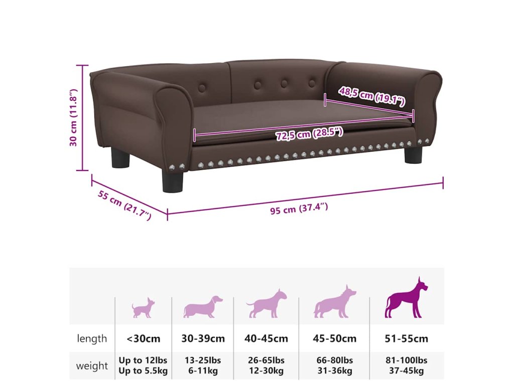 Pelíšek pro psy hnědý 95 x 55 x 30 cm umělá kůže 171819