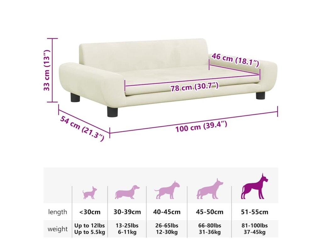 Pelíšek pro psy krémový 100 x 54 x 33 cm samet 171987