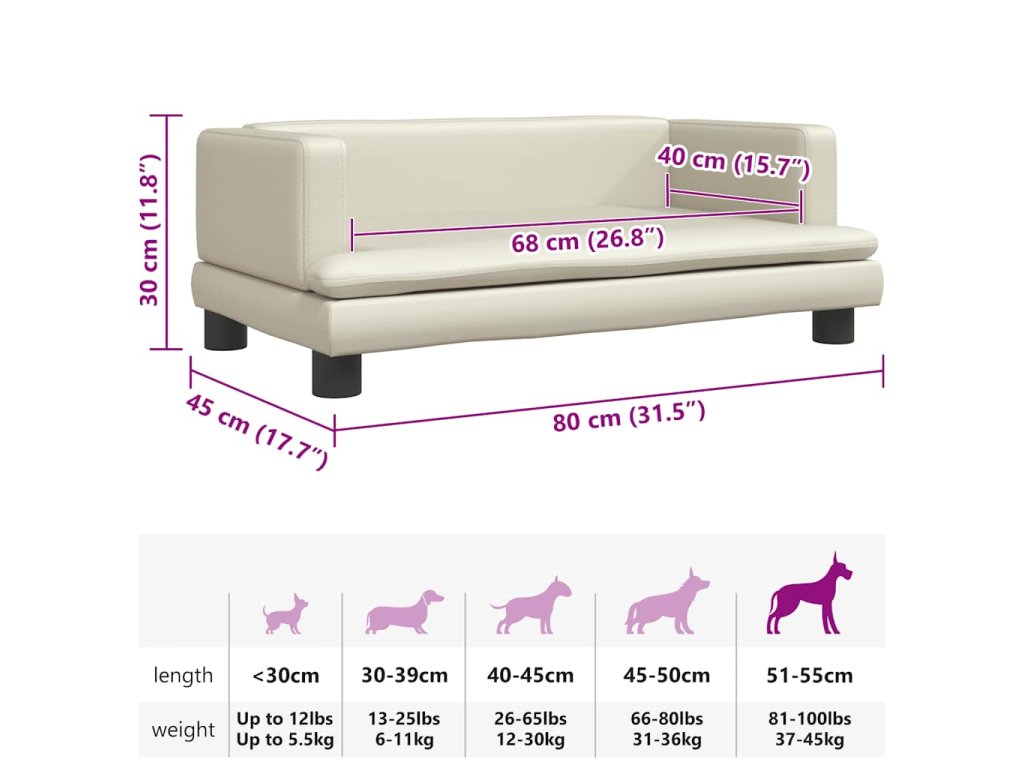Pelíšek pro psy krémový 80 x 45 x 30 cm umělá kůže 171902