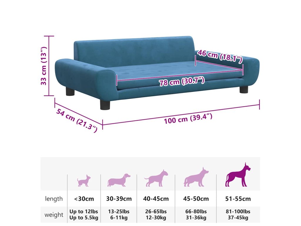 Pelíšek pro psy modrý 100 x 54 x 33 cm samet 171981