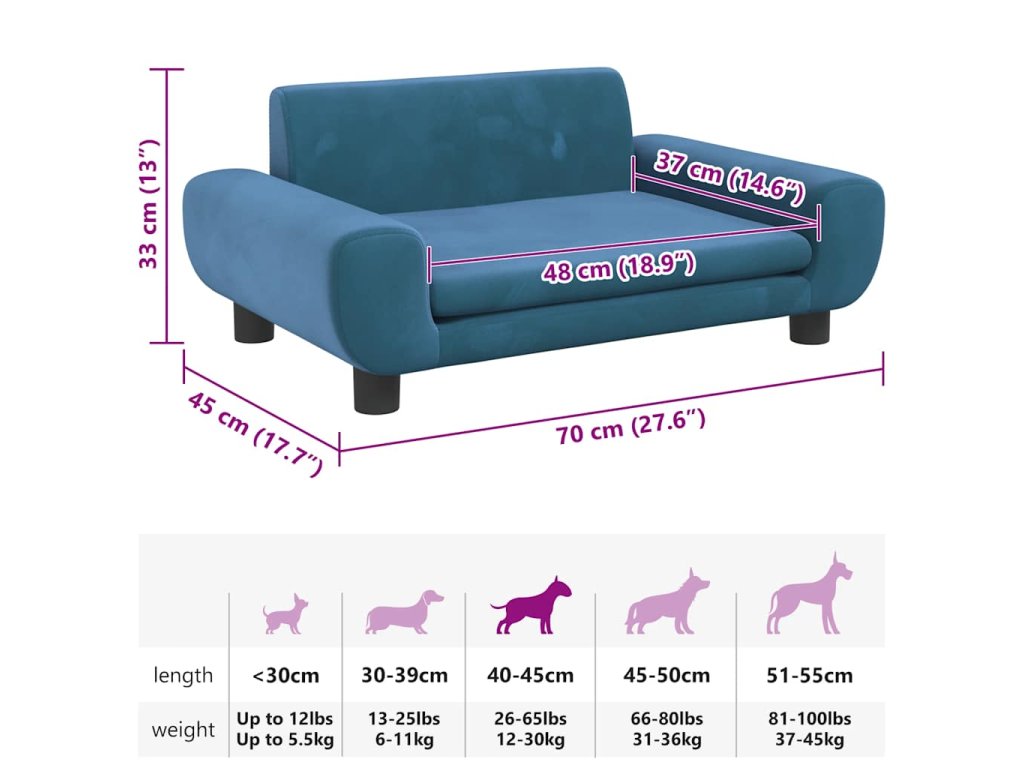 - Pohodlný a měkký materiál: Pohovka pro domácí mazlíčky je polstrovaná silným a měkkým pěnovým molitanem a potažená sametem, takže vašemu mazlíčkovi poskytne dostatečnou oporu a skvělé pohodlí, když si bude chtít odpočinout.