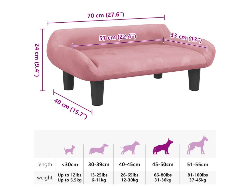 Pelíšek pro psy růžový 70 x 40 x 24 cm samet 171954