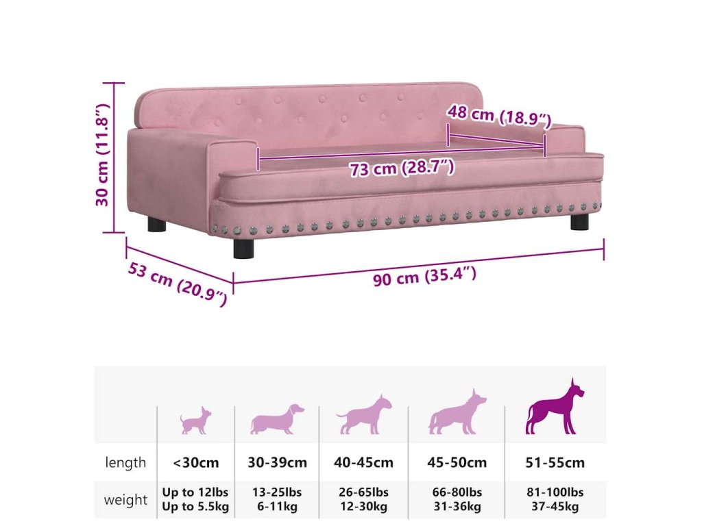 Pelíšek pro psy růžový 90 x 53 x 30 cm samet 171871