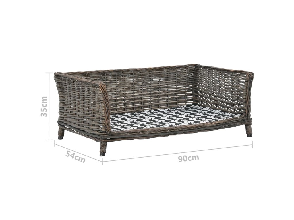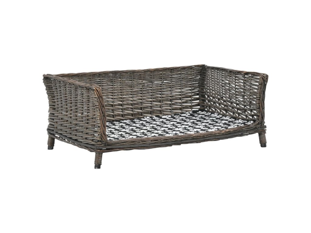 Pelíšek pro psy s poduškou šedý 90 x 54 x 35 cm přírodní vrba 170776