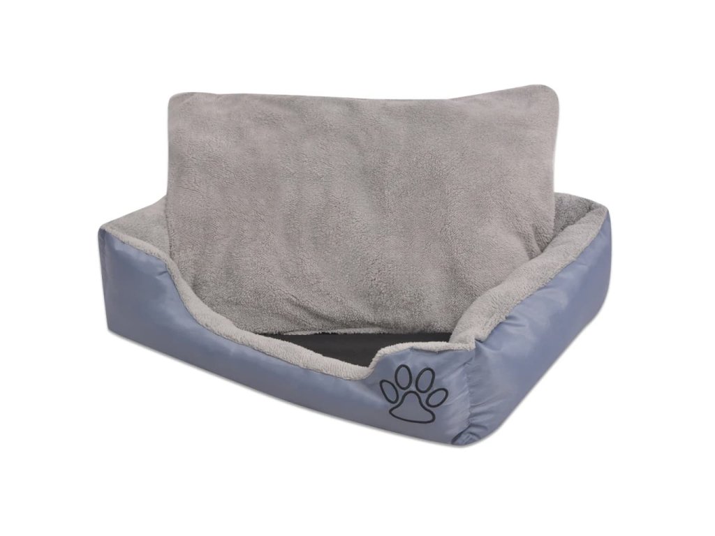 Pelíšek pro psy s polstrovaným polštářem velikost M šedý 170414
