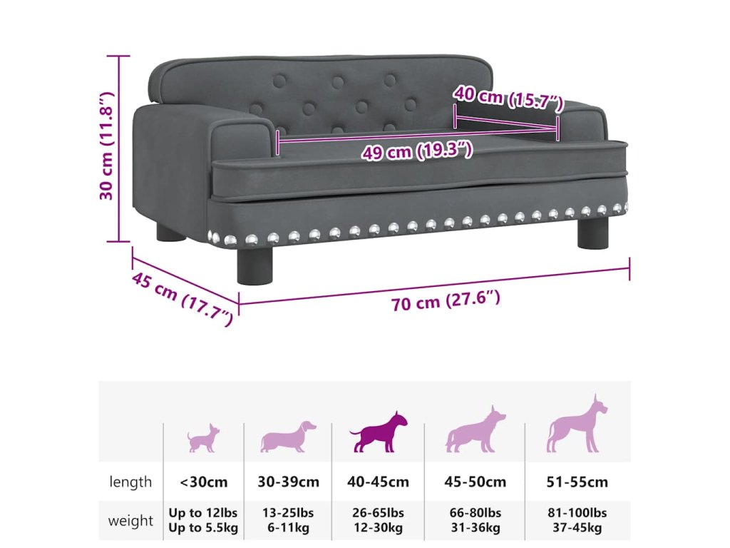 - Stylový design: Tento gauč pro psy dokonale zapadne do jakéhokoli interiéru a je skvělým doplňkem vašeho obývacího pokoje nebo ložnice.