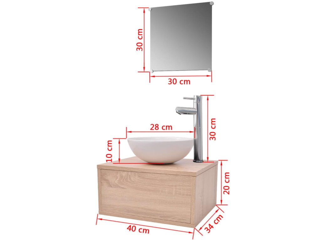 Sada nábytku sestává ze zrcadla a skříňky pod umyvadlo. Kompaktní velikost a minimalistický design z ní dělají skvělý doplněk do každé moderní koupelny. Koupelnová skříňka, vyrobená z vysoce kvalitní dřevotřísky, je velmi robustní a odolná.