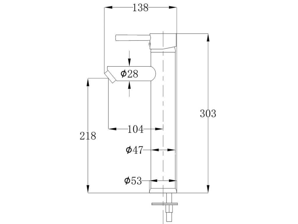 - Baterie s jednou pákou pro umyvadlo s jedním otvorem