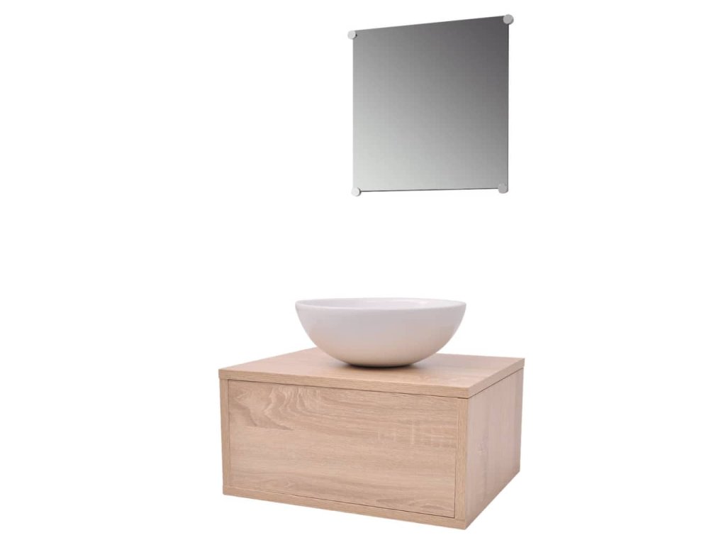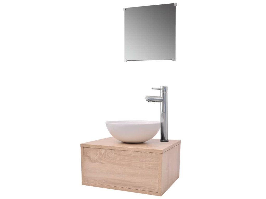 Pětikusový set koupelnového nábytku s umyvadlem a baterií, béžový 273686