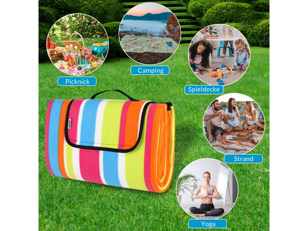 Pikniková deka 195×150 cm – barevná, voděodolná