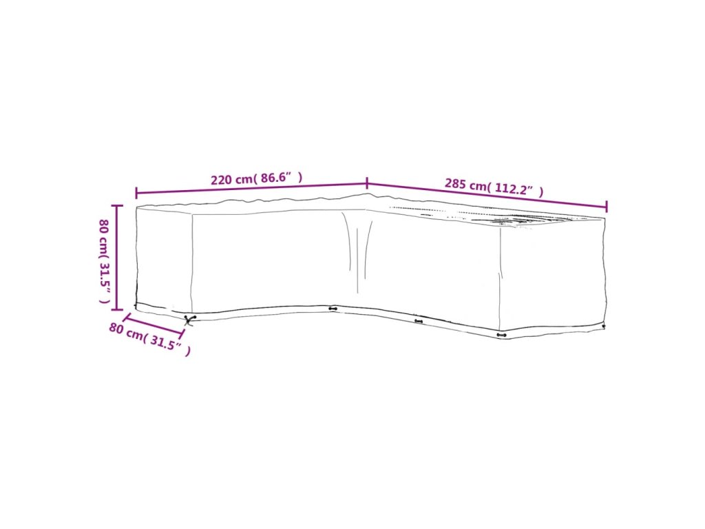 Plachta na zahradní nábytek tvar L 18 oček 220 x 285 x 80 cm 319323