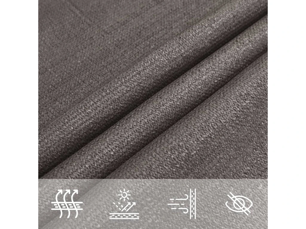 Sluneční plachta vyrobená ze 100% HDPE (vysokohustotní polyethylen) vás chrání před přímým slunečním zářením, umožňuje dostatečný průchod vzduchu a je propustná pro vodu. HDPE je speciálně upraven, takže je odolný proti plísním a UV záření. Slunečník se snadno sestavuje pomocí nerezových upevňovacích prvků na každém rohu a přiložených lanek.