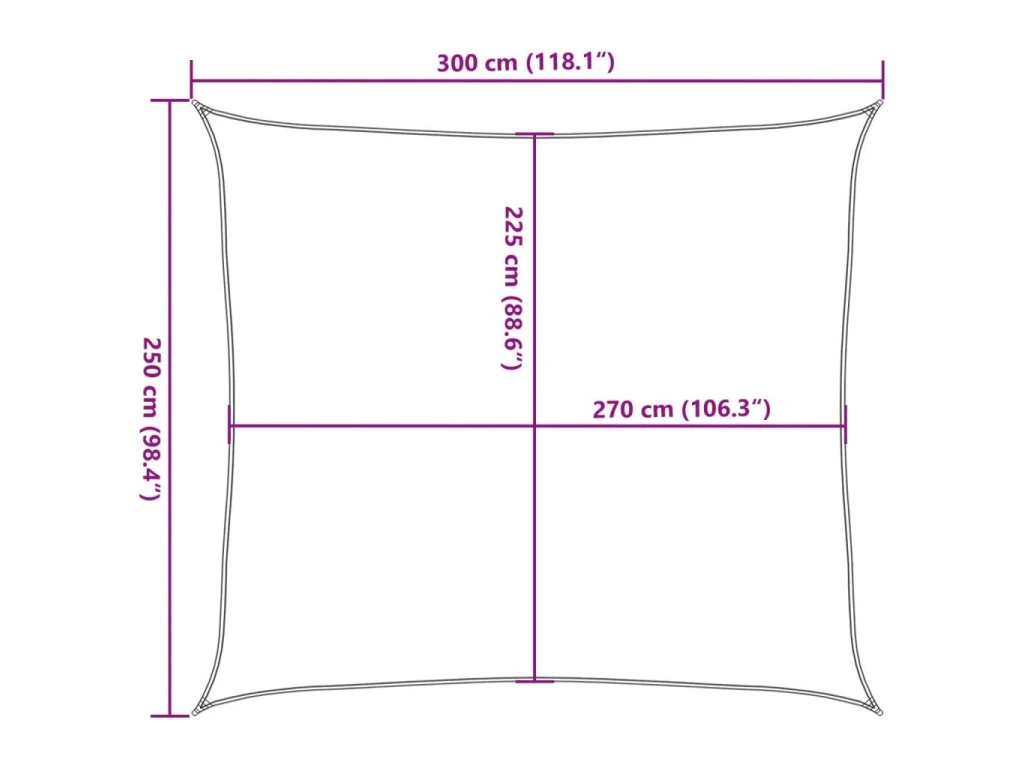Sluneční plachta vyrobená ze 100% HDPE (vysokohustotní polyethylen) vás chrání před přímým slunečním zářením, umožňuje dostatečný průchod vzduchu a je propustná pro vodu. HDPE je speciálně upraven, takže je odolný proti plísním a UV záření. Slunečník se snadno sestavuje pomocí nerezových upevňovacích prvků na každém rohu a přiložených lanek.