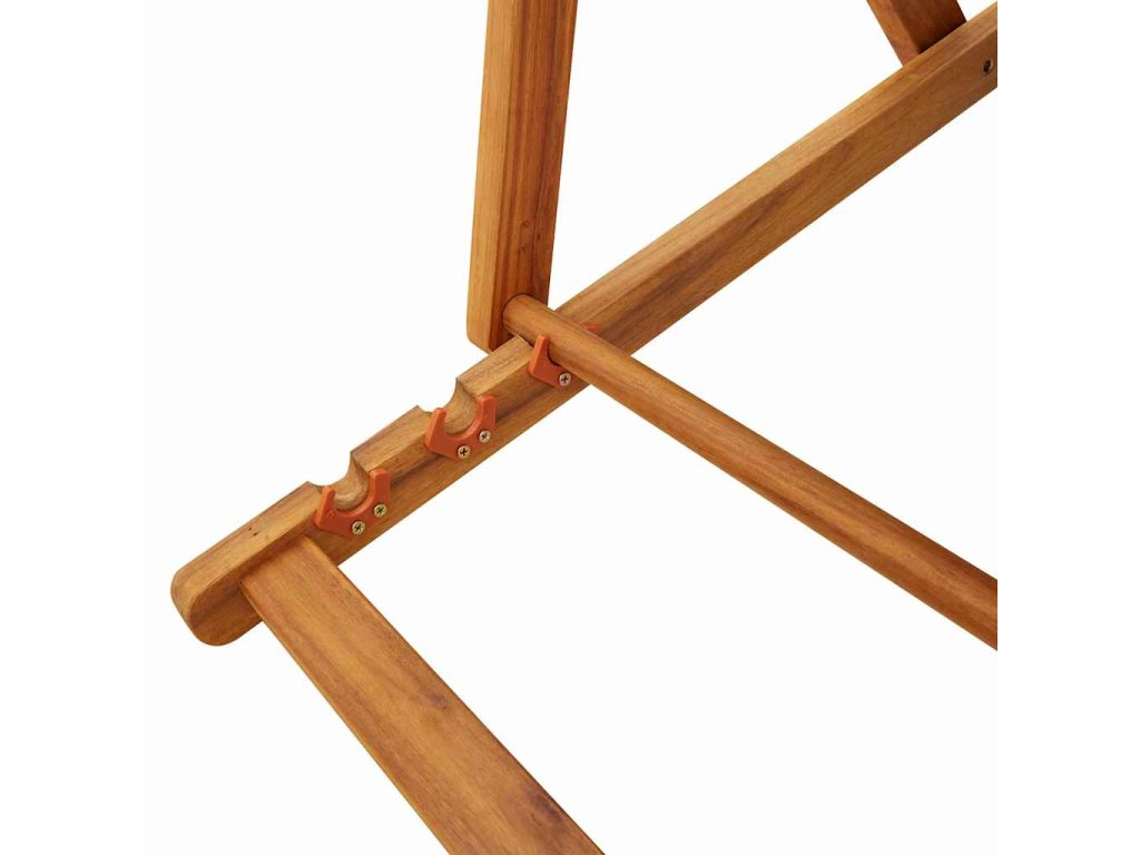 Toto plážové křeslo je super do každé zahrady nebo na terasu. Má jednoduchý a praktický design, který dělá vaše venkovní místo příjemným. Obdélníkový tvar a kombinace akáciového dřeva s Textilenem tohle křeslo dělají stylovým, pohodlným a trvanlivým. Vnáší do vašeho prostoru krásnou atmosféru, takže je ideální na lenošení, opalování nebo čtení.
