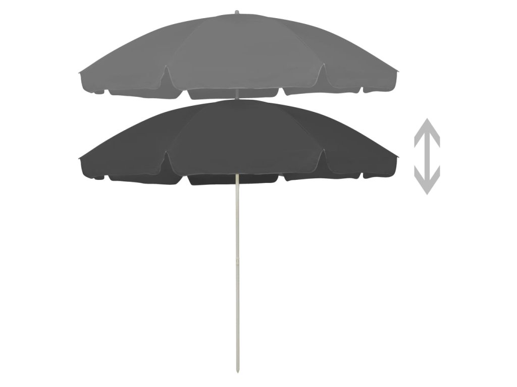 Plážový slunečník je vyrobený z polyesteru, který je odolný vůči UV záření a blednutí barev, je tudíž ideální pro blokování škodlivého UV záření.