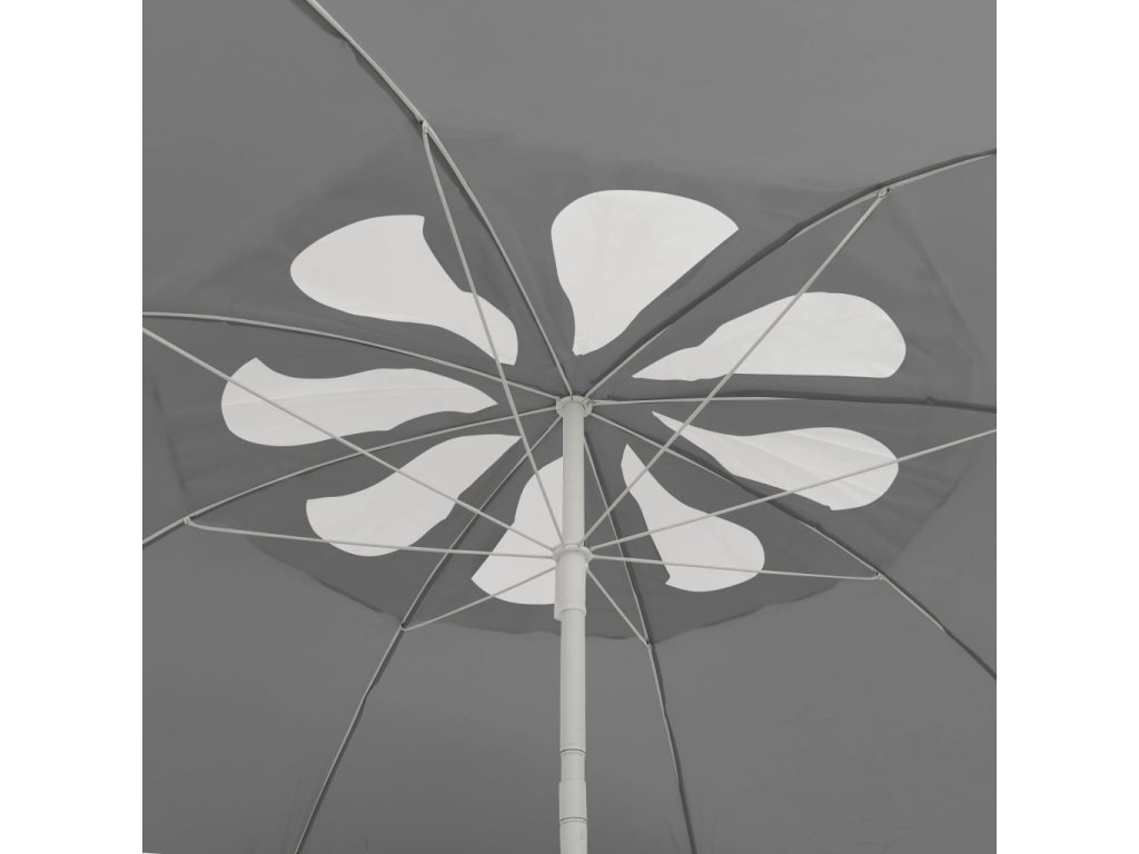 Stříšku slunečníku podepírají robustní žebra. Slunečník lze postavit do vašeho stávajícího stojanu nebo ho zasunout do stolu s otvorem uprostřed. Navíc si ho můžete nastavit a naklonit, kam potřebujete, aby vás optimálně chránil před sluncem. Větrací otvor na horní straně slouží k lepšímu proudění vzduchu, takže slunečník zůstane stabilní a odolá i silnému větru. Květinový design je jedinečný a elegantní a na pláži se s ním neztratíte.