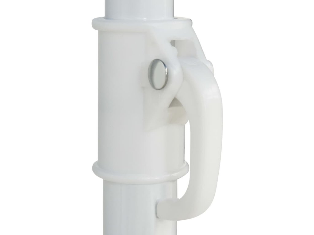 Stříšku pevně podepírají žebra slunečníku. Roztaženou stříšku zajišťuje pevný kolík umístěný na středové tyči. Slunečník můžete zasadit do svého stávajícího slunečníkového stojanu nebo do středu stolů s otvory na slunečník. Abyste se mohli optimálně chránit před sluncem, je možné úhel slunečníku upravit a naklonit ho tak, jak potřebujete.
