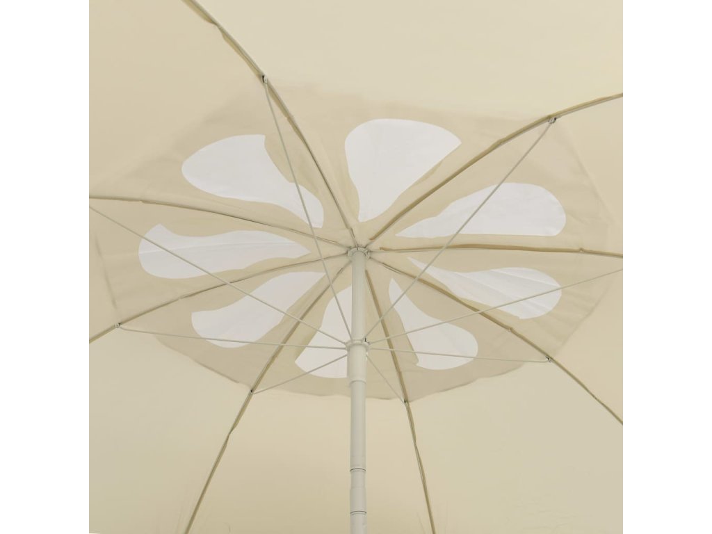 Stříšku slunečníku podepírají robustní žebra. Slunečník lze postavit do vašeho stávajícího stojanu nebo ho zasunout do stolu s otvorem uprostřed. Navíc si ho můžete nastavit a naklonit, kam potřebujete, aby vás optimálně chránil před sluncem. Větrací otvor na horní straně slouží k lepšímu proudění vzduchu, takže slunečník zůstane stabilní a odolá i silnému větru. Květinový design je jedinečný a elegantní a na pláži se s ním neztratíte.