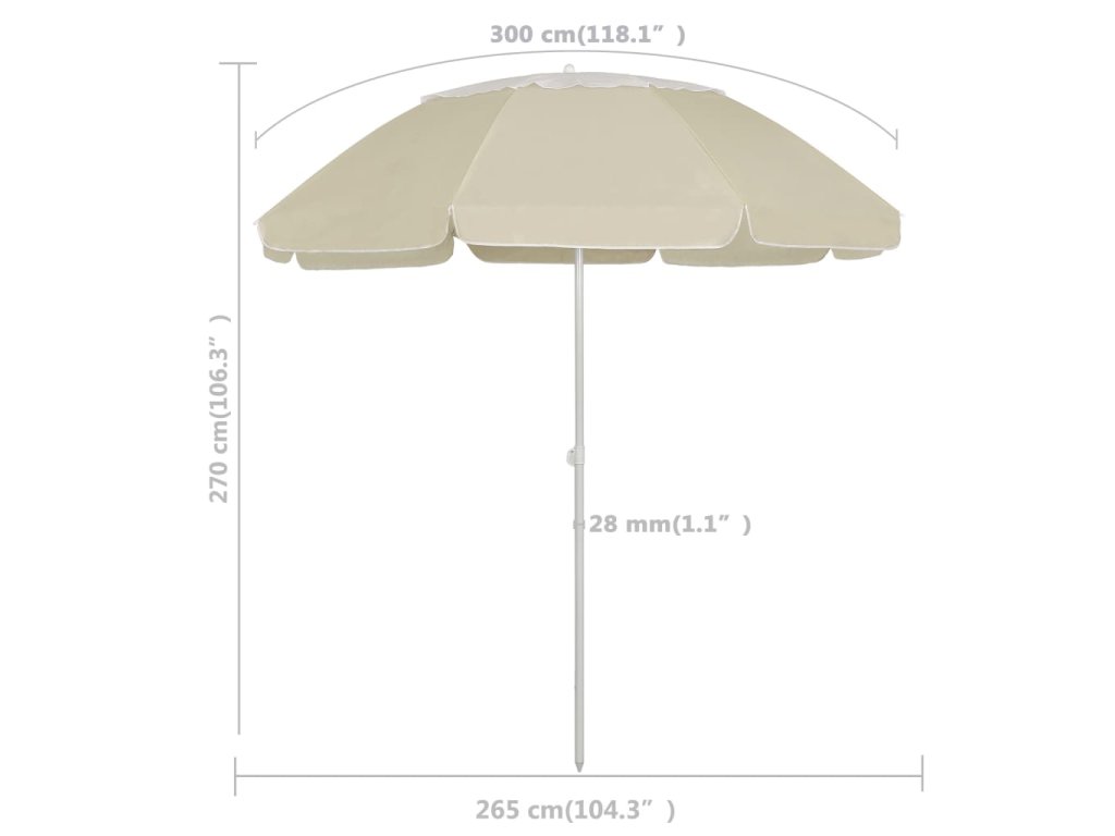 - Průměr slunečníku: 265 cm