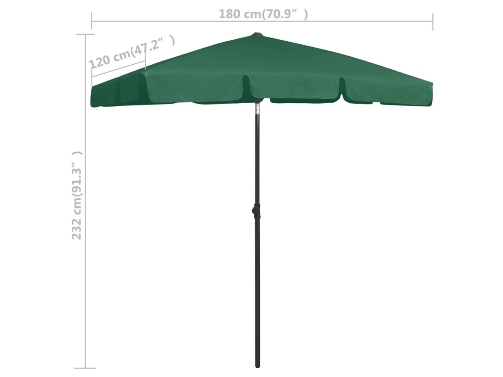 - Plocha slunečníku: 180 x 120 cm (D x Š)