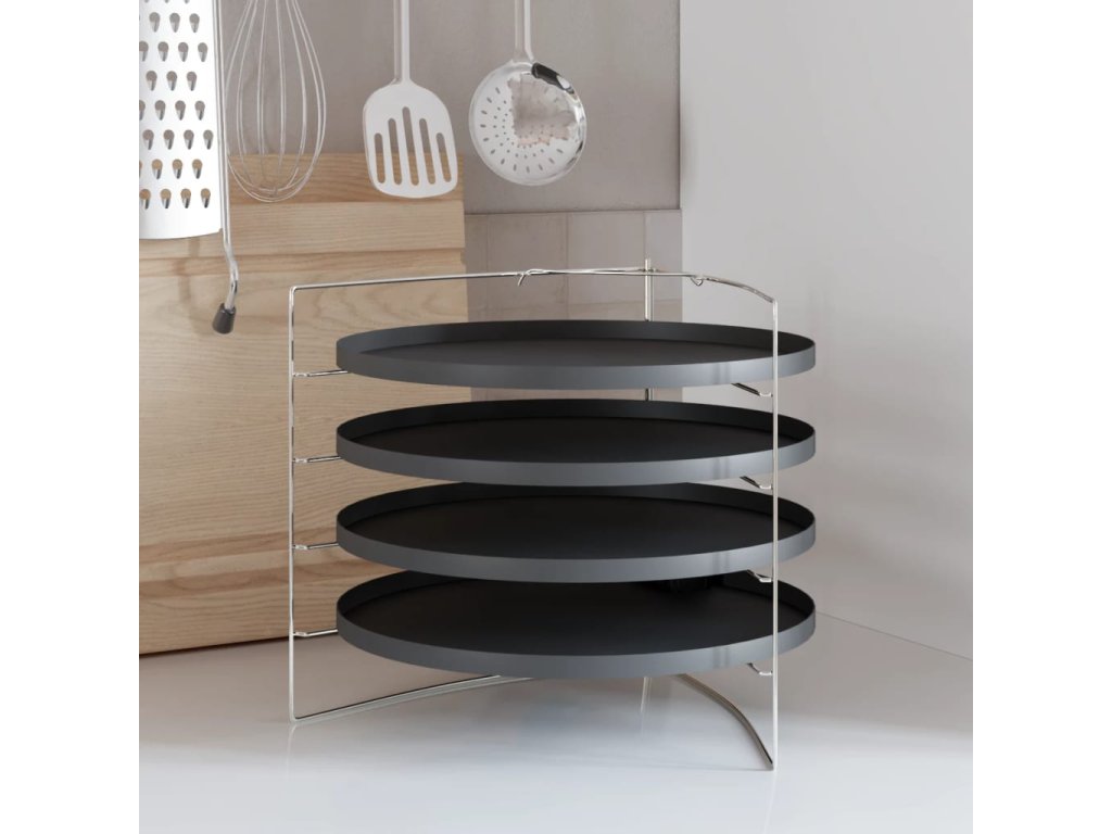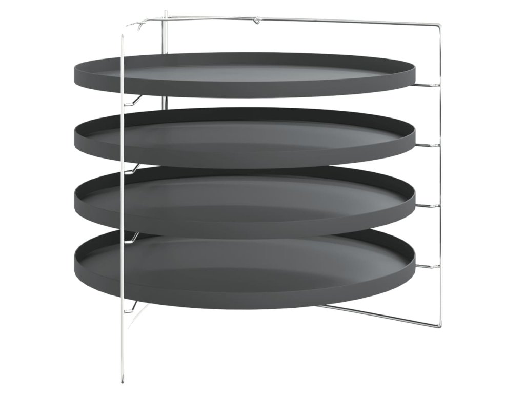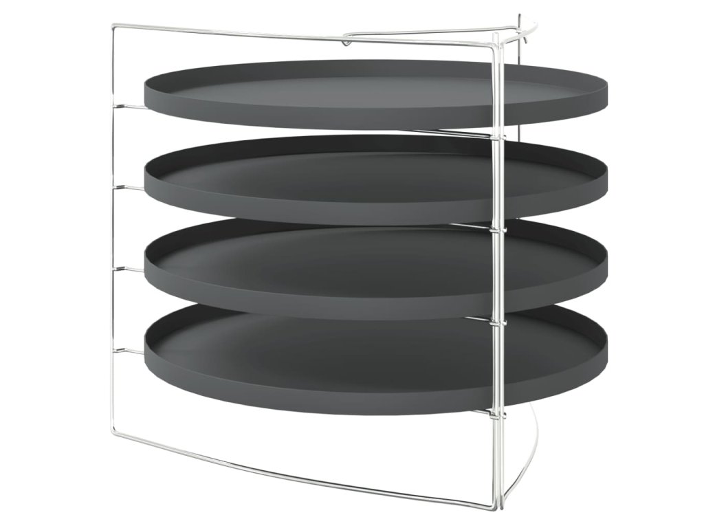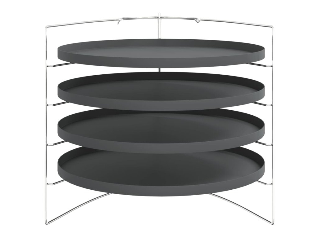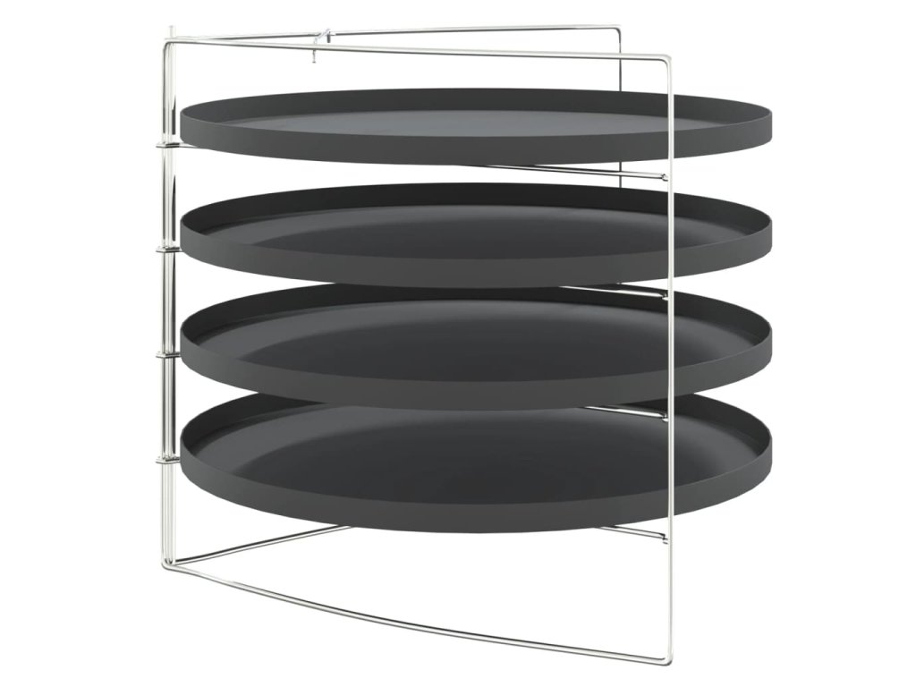 Tato sada, která se skládá ze 4 plechů na pizzu a ocelového stojanu, je skvělým řešením pro přípravu 4 pizz nebo jiného občerstvení a mražených potravin najednou!