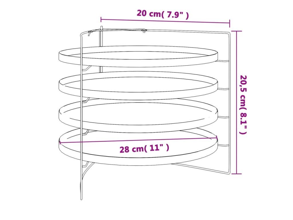 - Rozměry stojanu na pizzu: 28 x 20 x 20,5 cm (D x Š x V)