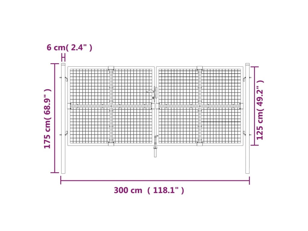- Snadná montáž: Ocelová zahradní branka má dva boční sloupky se šroubovými závěsy pro snadnou montáž.