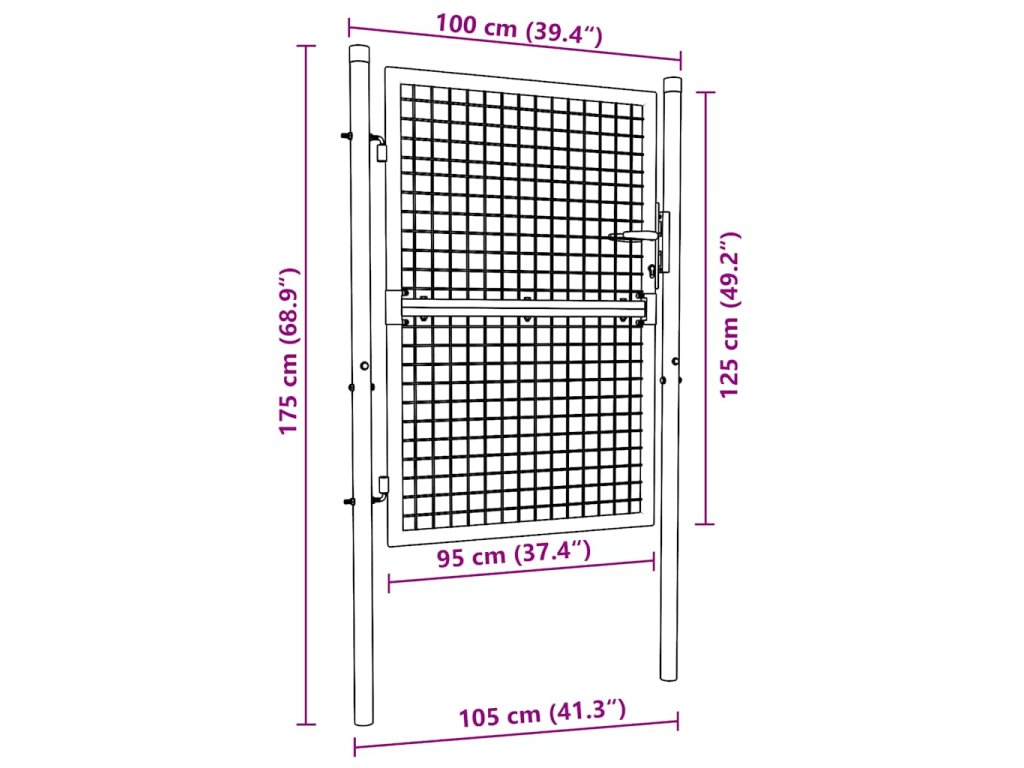 Zahradní branka je perfektně zpracovaná a vyrobena z pozinkované oceli s práškovým povrchem, která je odolná vůči korozi a tvoří pevnou konstrukci. Má dva boční sloupky se šrouby k zavěšení pro snadnou instalaci.