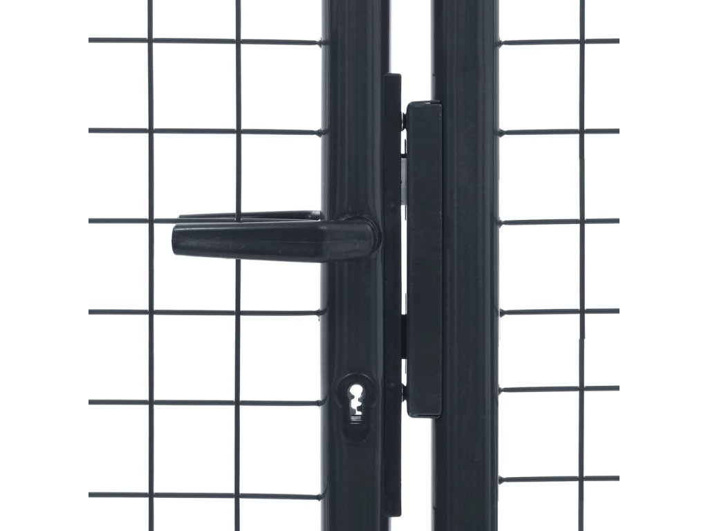 Zahradní branka je perfektně zpracovaná a vyrobená z pozinkované oceli s práškovým povrchem, který je odolný proti korozi a vytváří pevnou konstrukci. Má dva boční sloupky se šrouby k zavěšení pro snadnou instalaci. Je rovněž vybavena ukotvovacím kolíkem pro velký spodní šroub, který zajišťuje, že může být branka bezpečně uzamčena.