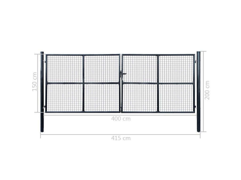 Pletivá zahradní branka pozinkovaná ocel 415 x 150 cm šedá 143377