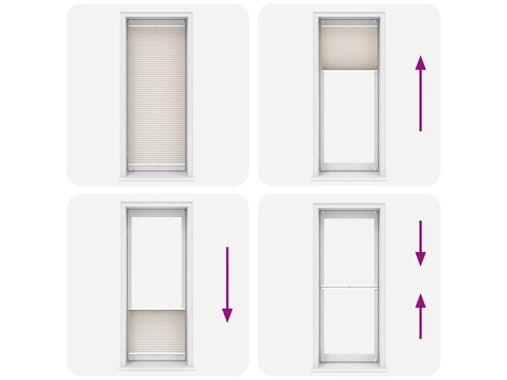 Tato plisovaná roleta je svělým řešením zastínění interiéru i k vytvoření soukromí. Roleta umožňuje oboustranné vytahování z horní i z dolní strany, a tak ji můžete nastavit do pozice, která Vám v danou chvíli nejlépe vyhovuje.