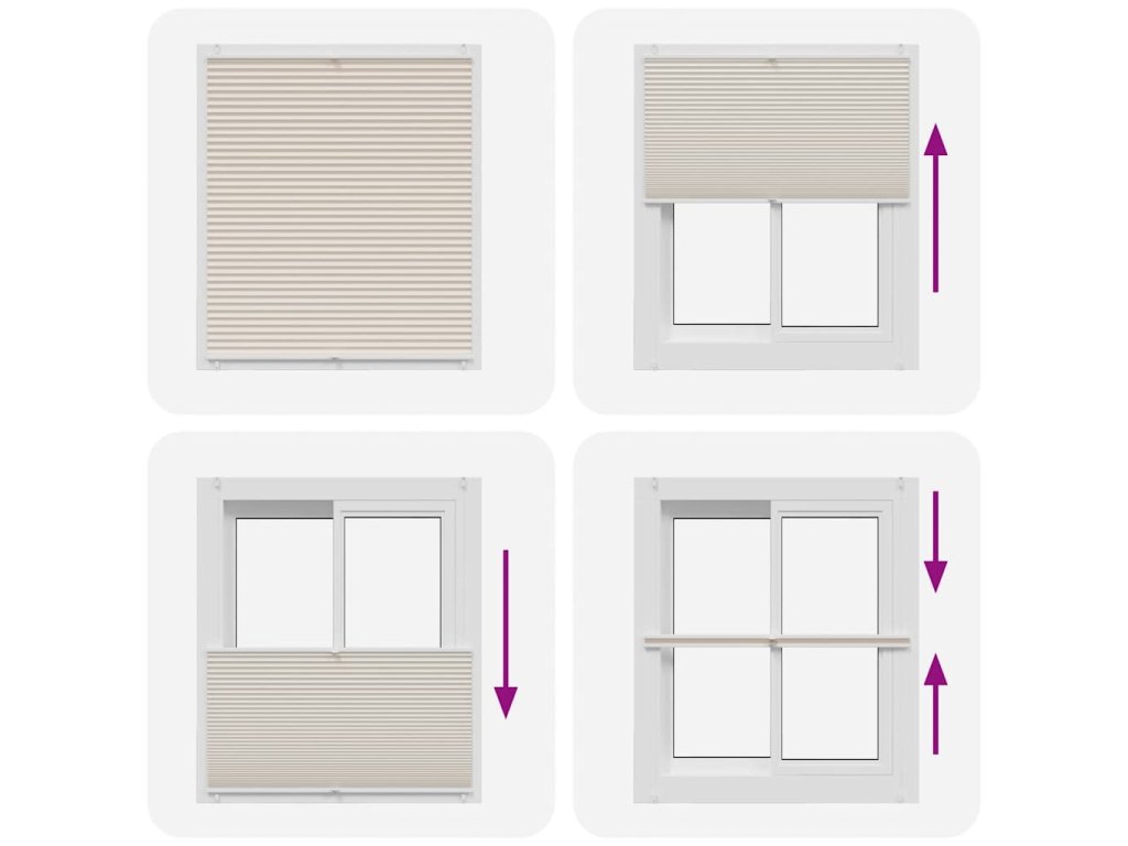 Tyto krémové plisované žaluzie jsou ideální pro zajištění soukromí a ochranu před sluncem. Lze s nimi pohybovat jak v horní, tak i v dolní části, dle vaší potřeby. Nastavením do různých poloh dosáhnete zajímavých efektů.