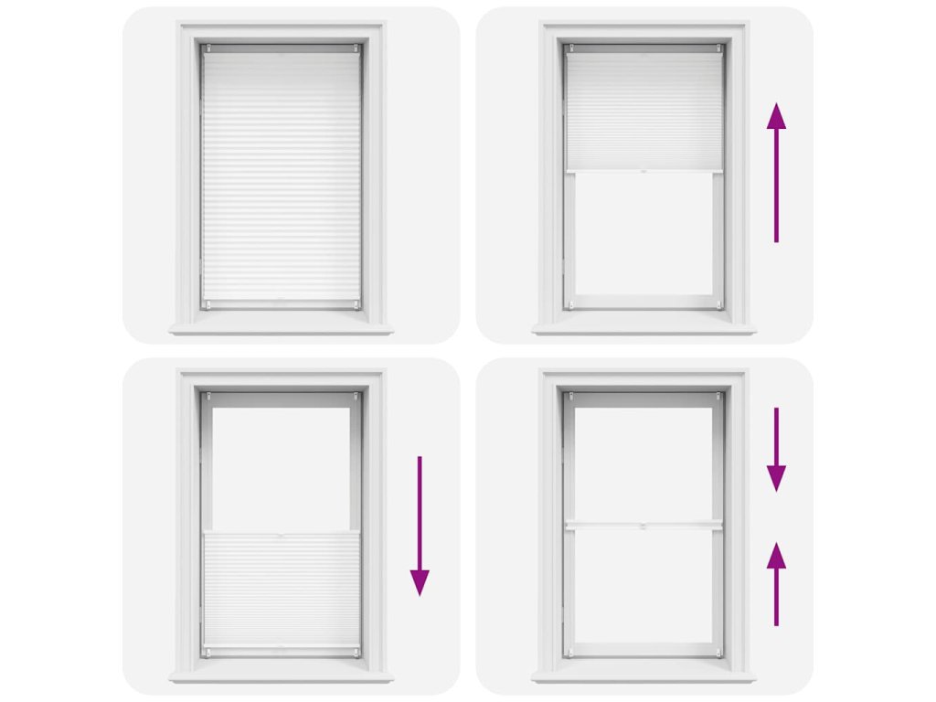 Tato bílá plisovaná žaluzie je ideální pro zajištění soukromí a ochranu před sluncem. Lze s ní pohybovat jak v horní, tak i v dolní části, dle vaší potřeby. Nastavením do různých poloh dosáhnete zajímavých efektů.