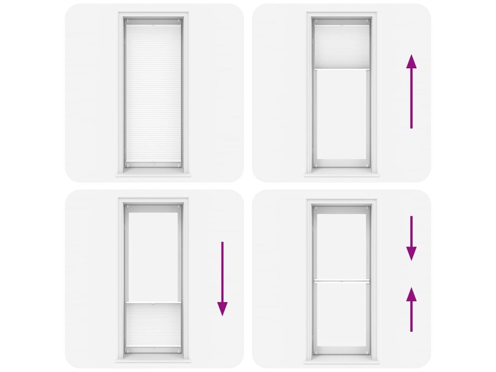 Tato bílá plisovaná žaluzie je ideální pro zajištění soukromí a ochranu před sluncem. Lze s ní pohybovat jak v horní, tak i v dolní části, dle vaší potřeby. Nastavením do různých poloh dosáhnete zajímavých efektů.