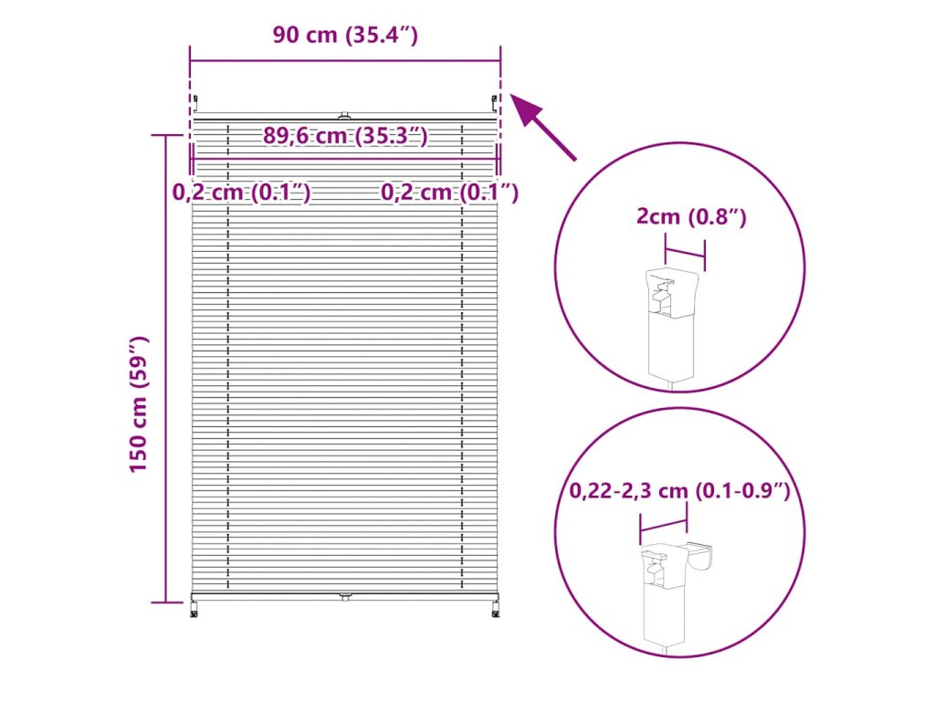 Plisované žaluzie / rolety Plisse 90 x 150 cm - bílé 240607