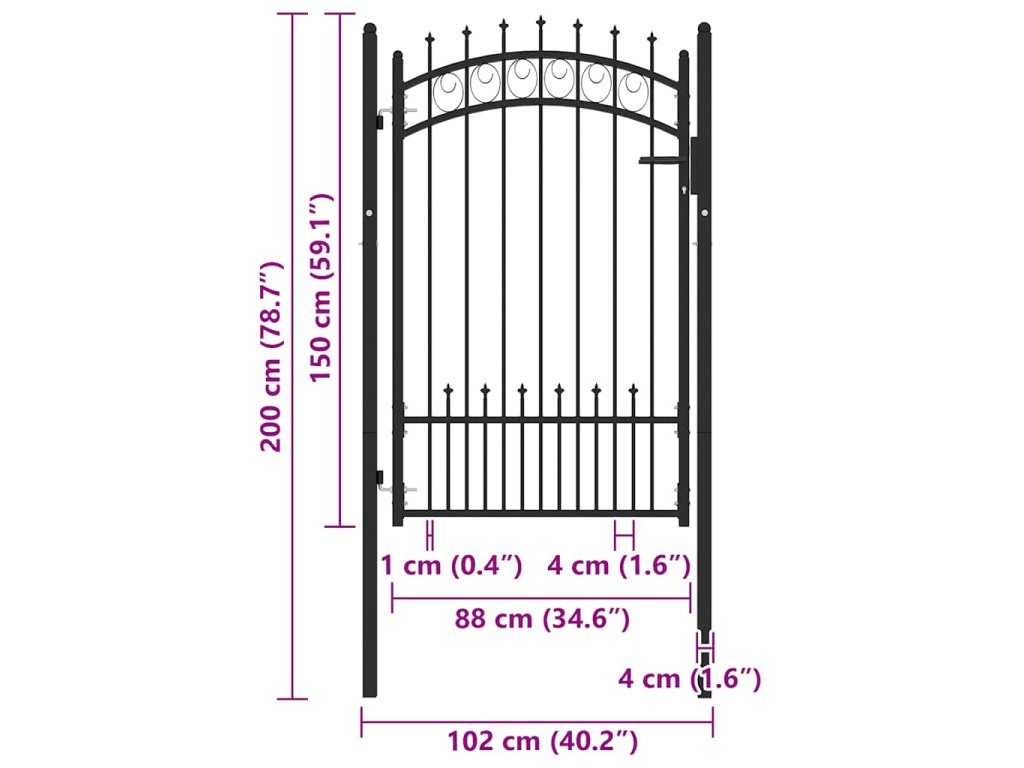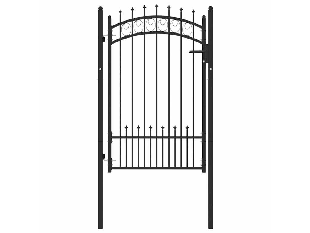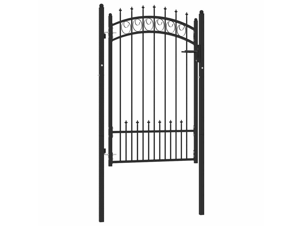Plotová branka je vyrobená z vysoce odolné oceli, má robustní konstrukci s práškovým nástřikem proti rzi a korozi. Zahradní branka je vybavená vertikálním pruty zakončenými hroty a silnou vodorovnou výztuží, takže vám poskytne vysoký stupeň zabezpečení. Klenutý design jí dodává na eleganci. Součástí balení jsou dva pevné sloupky s robustními závěsy pro snadnou instalaci a také zámek se třemi klíči.