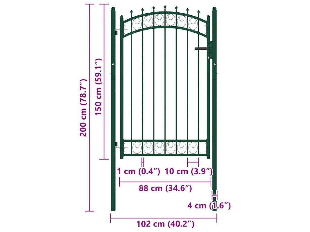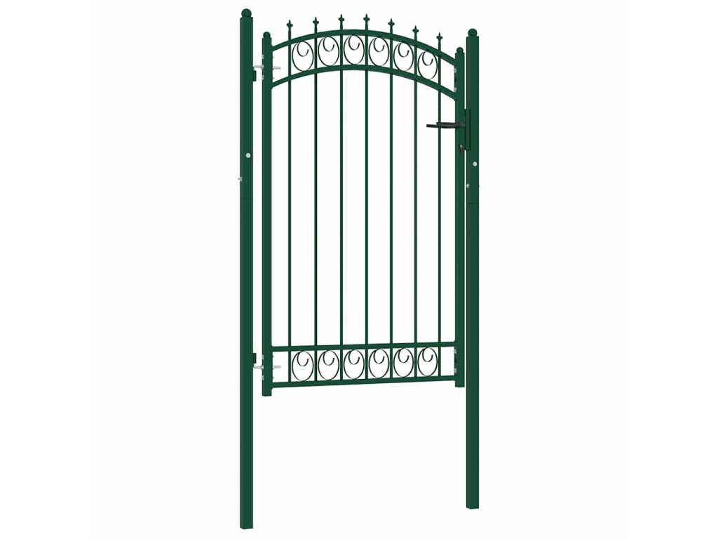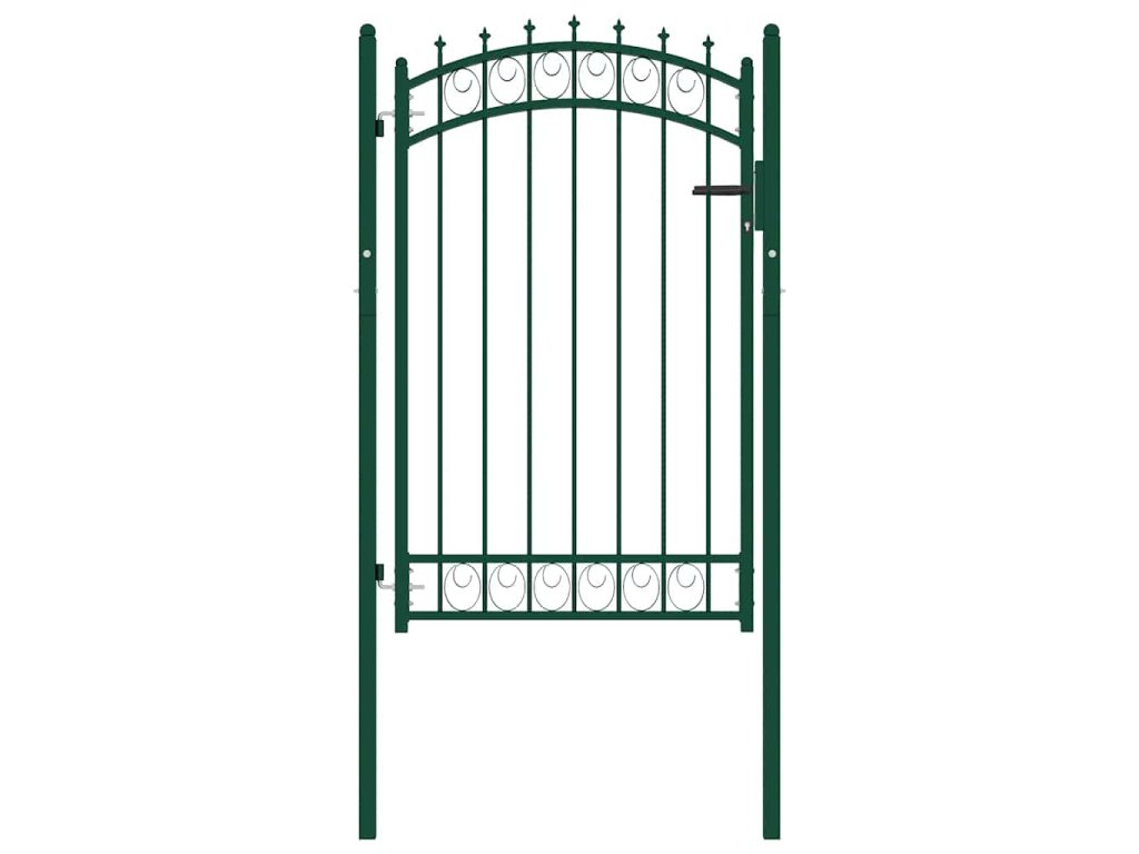 Plotová branka je vyrobená z vysoce odolné oceli, má robustní konstrukci s práškovým nástřikem proti rzi a korozi. Zahradní branka je vybavená vertikálním pruty zakončenými hroty a silnou vodorovnou výztuží, takže vám poskytne vysoký stupeň zabezpečení. Klenutý design jí dodává na eleganci. Součástí balení jsou dva pevné sloupky s robustními závěsy pro snadnou instalaci a také zámek se třemi klíči.