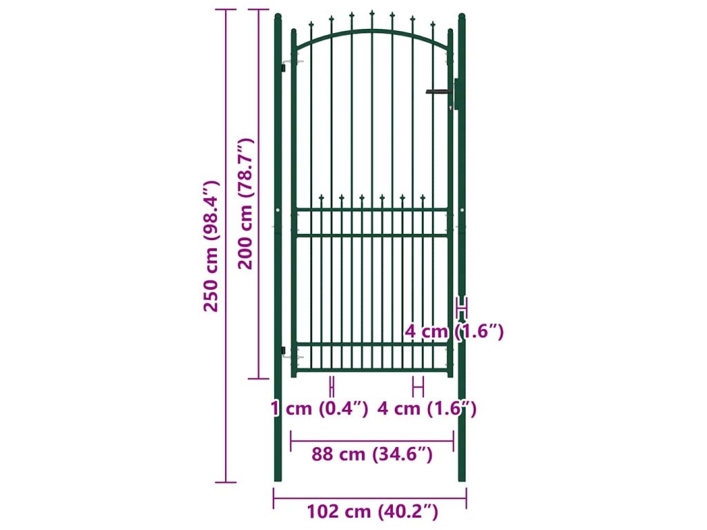 Plotová branka s hroty ocel 100 x 200 cm zelená 146397