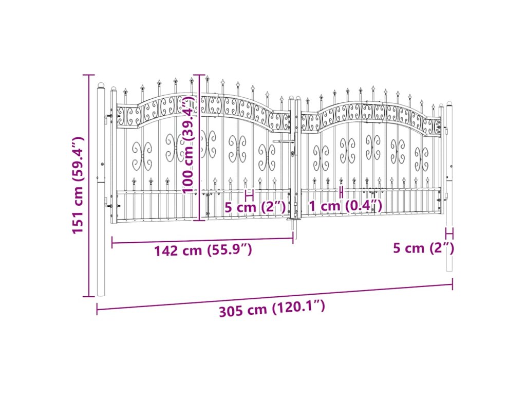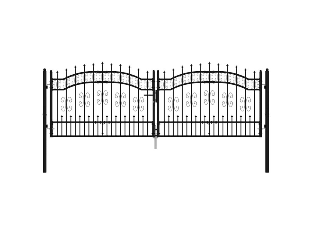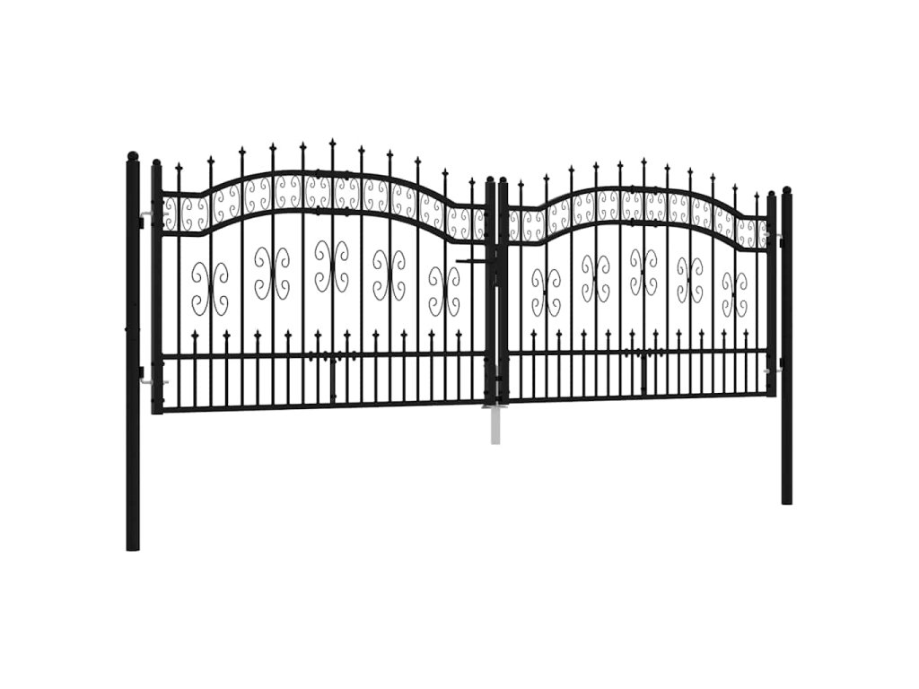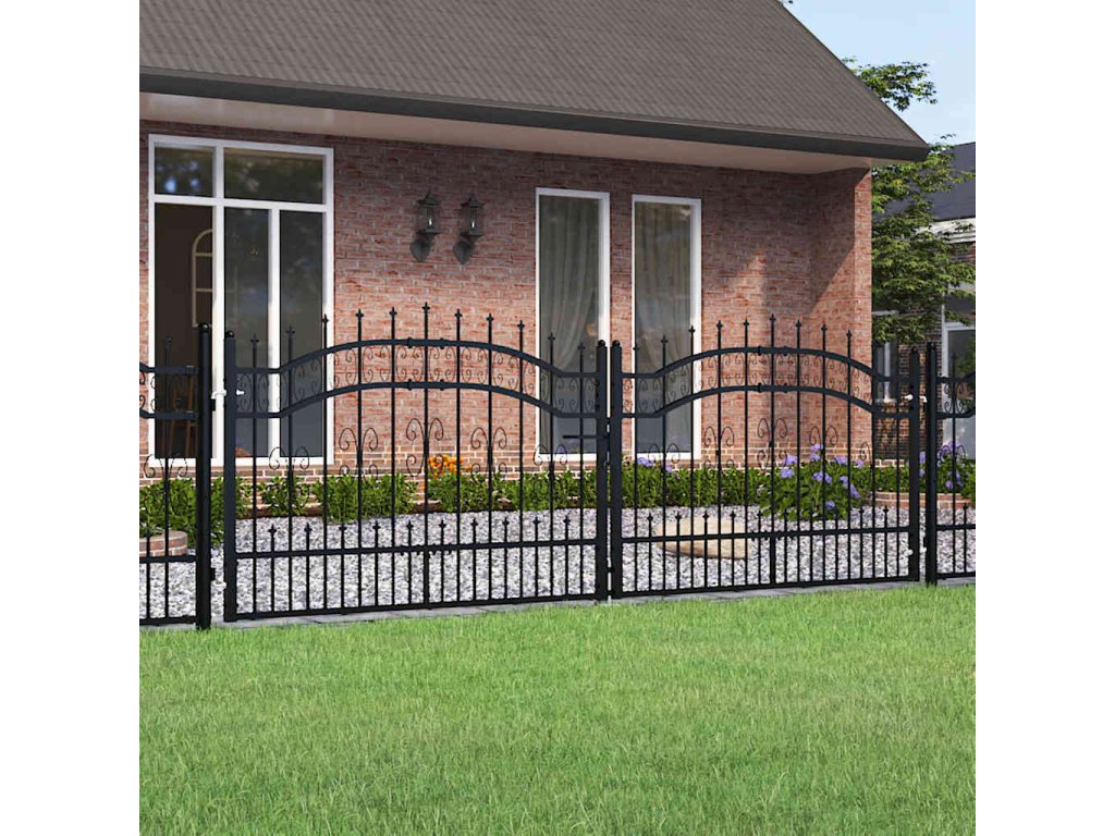 Plotová branka s kopím nahoře černá 305 x 100 cm, práškově lakovaná ocel 151095