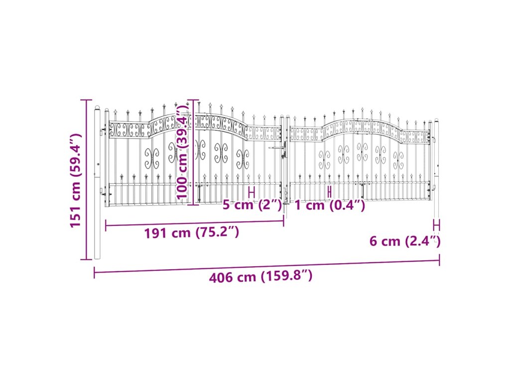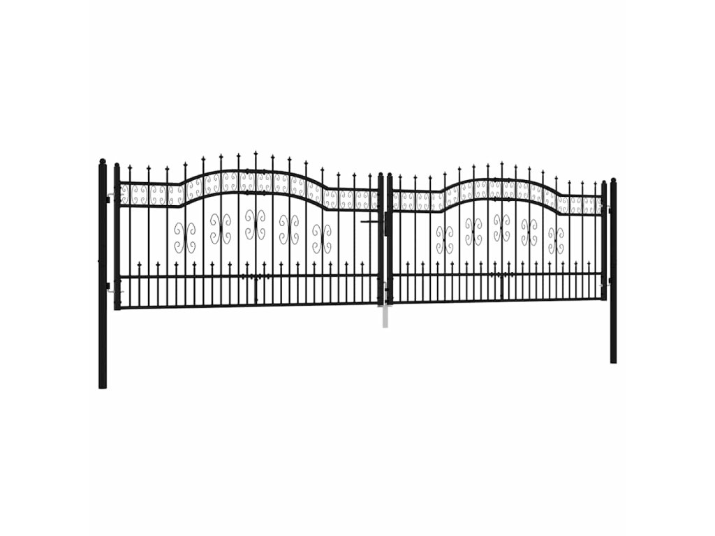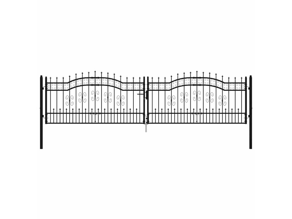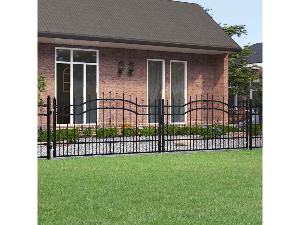 Plotová branka s kopím nahoře černá 406 x 100 cm, práškově lakovaná ocel 151100